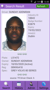 It's an Android app I use to update our Database. The search facility doesn't differ a whole lot from TfIs Driver Check app, it just gives the plate owner (subject to certain assumptions) and an Industry ID that doesn't mean a whole lot, just an ID number allocated by NTA when a vehicle is associated with a driver. The advantage to me in using it is that it automatically updates our system where required. I probably shouldn't post pictures of it TBH, I was just too lazy to open the TfI one. Anywaysanall it's available to members* on request.