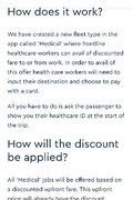 These jobs are completely optional and will be clearly marked to show that they are discounted fares open to healthcare professionals only. ‌