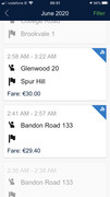 Just as we are coming in to Carrigaline town a 'Follow-on' pops up fer 'Glenwood', I have no Fookin idea where Glenwood is but I accept it in the knowledge that it can't be too far away. I drop my original customer and cash him in fer 30, only to see that Glenwood is the estate next to his, the Glenwood customers requests to go back to Cork city !