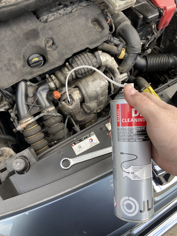 Curiously it’s after flashing up another warning “Engine fault, risk of filter clogging” I assumed the dpf was clogged and was pressurising the exhaust, so I went out and bought DPF cleaner unscrewed the 22mm sensor and spayed the cleaner downstream in the exhaust;