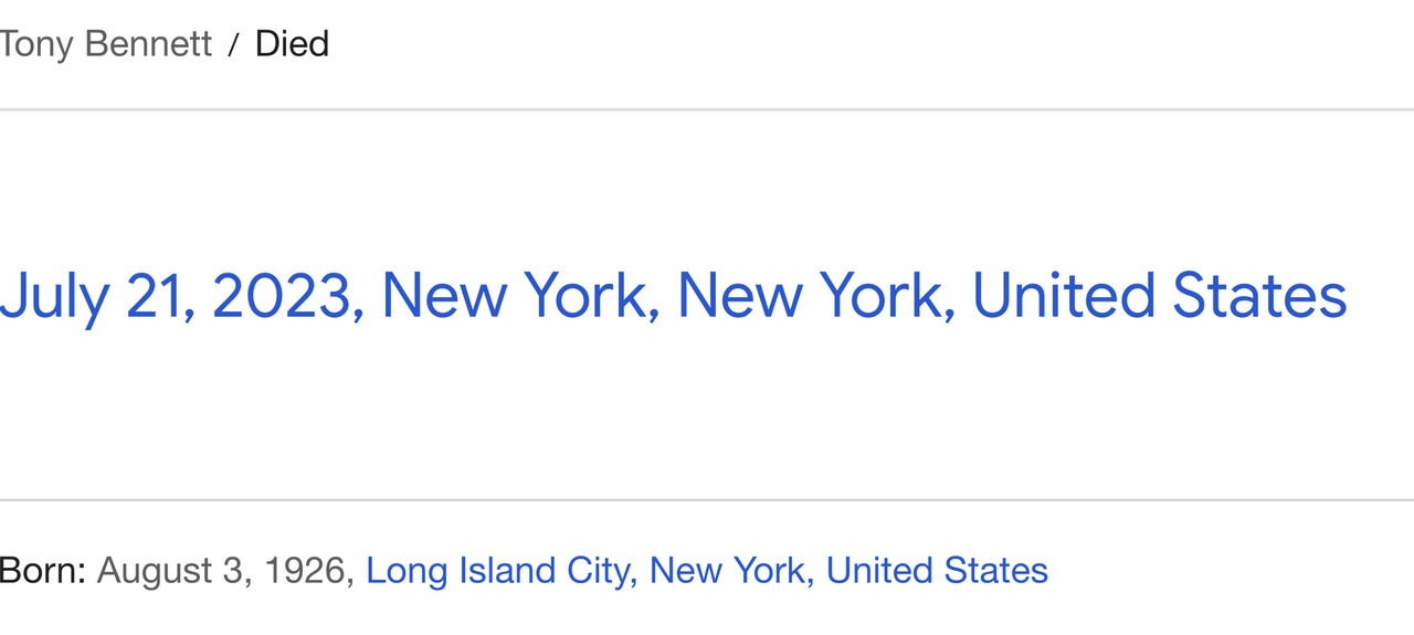 Just read his bio on Wiki, a very interesting man, born into poverty, cheated death several times in WW2, life long democrat, pacifist, human rights campaigner, demoted in the army for dining with a negro, coke addict in later life, rehabilitated, and managed to great succes in his later years by his son Danny, oldest performer ever to have a no.1, and was another type of artist also.https://www.google.com/search?q=tony+bennett+artwork&tbm=isch&sa=X&ved=2ahUKEwi3kLjcl6CAAxUTh1wKHQs1CVAQ0pQJegQIDRAB&biw=1920&bih=929&dpr=1#imgrc=GyDrydGb-SDZUM