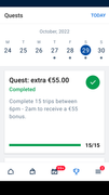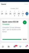 Below screenshots (from my Free Now Driver app) clearly show 3 "completed" and 2 "not completed" quests over the Haloween weekend... yet I was only paid for 2 and the depot are refusing payment for the other one. Has anyone else been caught by this scam?