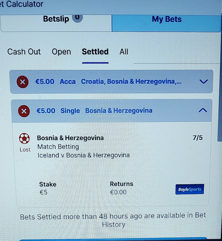 Bet 1;  €5 Single on Bosnia & H @ 7/5.