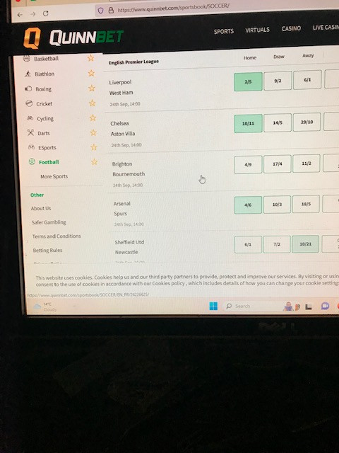 Today I'll have 4 x €100 Trebles and a €4 Quad on the premiership football with Quinnbet;