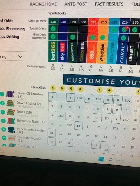 I have €250 EW on Echo In Rain in the 4/10 at the Curragh, but I prefer the William Hill's offer of 10/1 albeit with only 6 places.