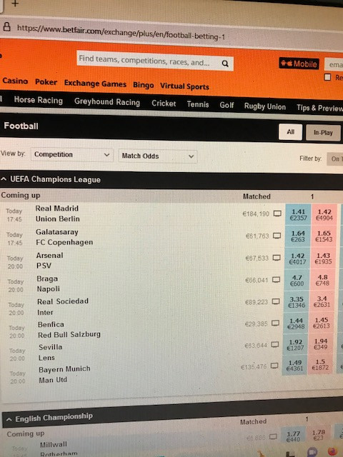1st image showing exchange prices for todays soccer: