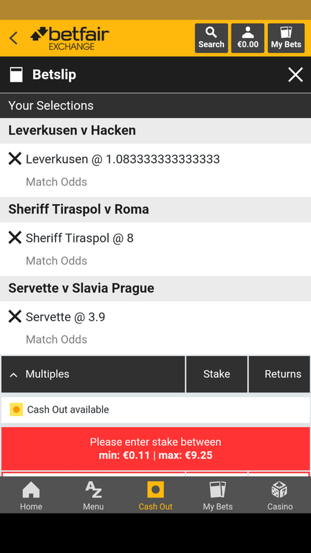 3rd image showing stake limit when 3 random selections are added to the betting slip - 1st 3 prices selected in this case: