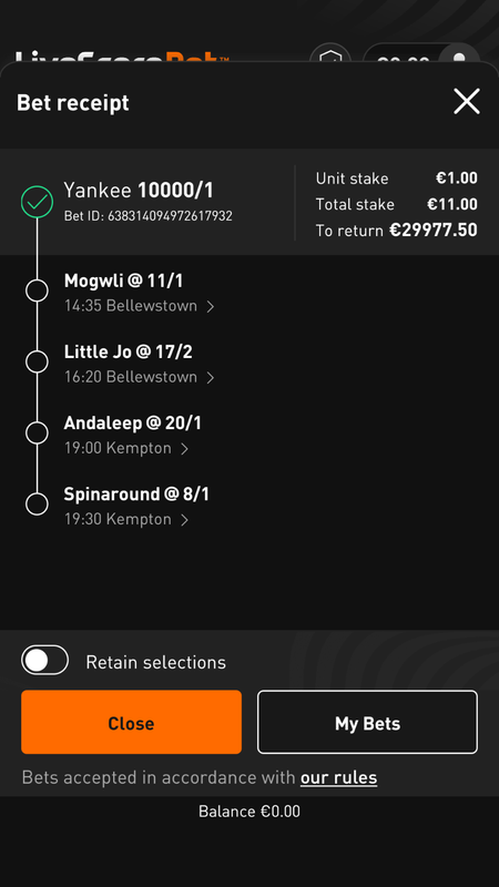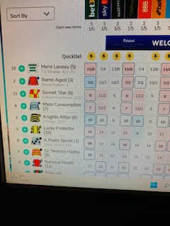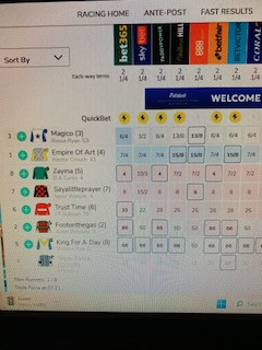 10 x €15 EW Trebles, 5 x €15 EW Quads.