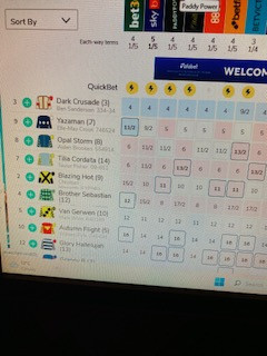 I'll have €70 EW on Dark Crusade @ 4/1 and €70 EW on Blazing Hot @ 10/1,