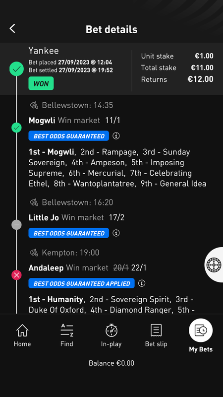 and €369 lost on the earlier bet shows a loss of €659 on the day.