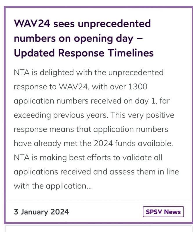 The money is NOT gone - the NTA has only sent out the grant letters.  Those with grant letters still have to buy a new WAV, get it passed out as a WAT and only then do they get the money.  EDIT:  So you're spending, what, €40-50k upfront to claim back €17k  3 or 4 months down the road?  Not many have that much money floating around.