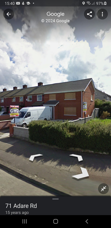 the house is in a permanent cycle of boarded up, fixed up, boarded up, fixed up, boarded up, fixed up. i found a news story that someone was stabbed in the garden and the front of the house was shot up on a separate occasion. there was a news story a couple years ago incidebt in coolock and the car in the driveway was petrol bombed. i never found out if it was a pikey nest or if the jippo knew of the gaff's notorious reputation and dropped me in it or what the story was. it recently sold for sixty grand or sumtin and the inside front is wrecked from the fire damage.