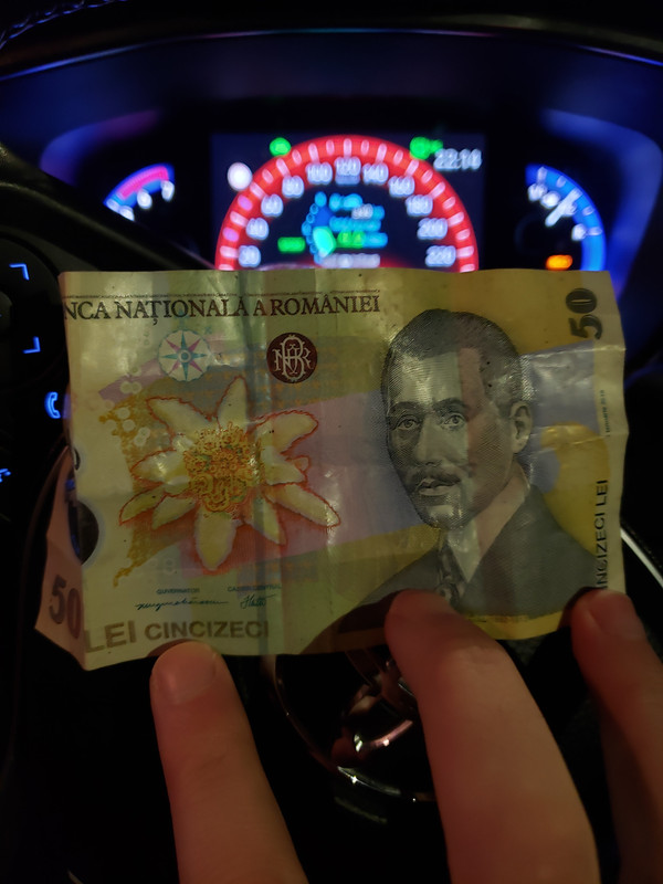 picked up two canada goose jobs in marrsfield goin to a gaff in belcamp green. there was a junkie waitin for them outside. she was probably 40. she looked 70. did a u-turn and she waved at me and said have you got two tenners for a twenty. grand i says. she handed me a folded over blue note and i gave her two tenners. drivin off i realised it wasn't 20 euros it was 50 romanian rubles. it's worth a tenner i found out. was worried it was worth €0.07 or sumtin.