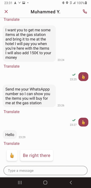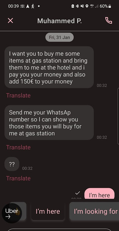 and collect the other lad, at first I refused and told her I would send