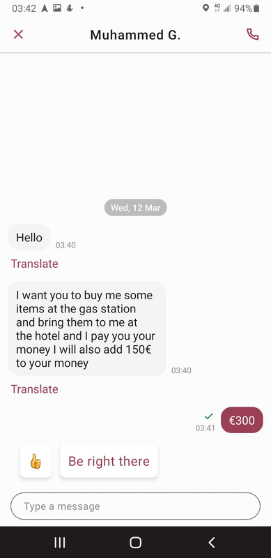 No Ken, he got spooked when I asked him for his mobile. He texted that he would pay with a pre-loaded card.