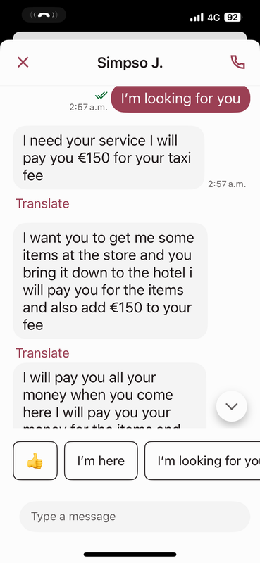 He turned up in the beautiful seaside resort town of Balbriggan one morning last week, I meant to post it but forgot. Anywaysanall, you were right about him not going for cash up front. I rang him through the Free Now app a couple of minutes after pressing arrived. That's when the name rang a bell, if you'll excuse the pun. I hadn't seen the messages he sent via Free Now but they were there, pretty much as per screenshots in this thread. He wanted my phone number to send pictures of what he wanted me to collect in Dunnes Stores and bring to the hotel. I told him I don't give my number out and I'd need cash up front so I could meet him at the hotel and take it from there... cunt hung up on me. I don't think I got the no contact fee either.