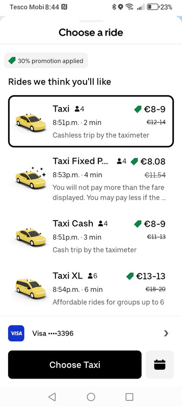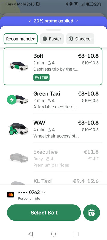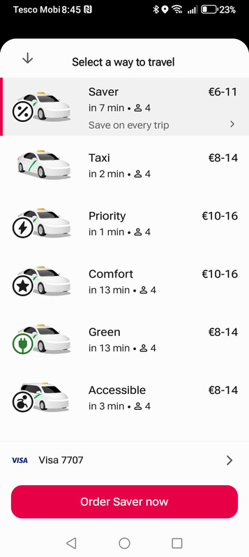 Uber and Bolt subsidizing the fares (as usual) so paying the diver significantly more than Free Now's Taxi Saver option.